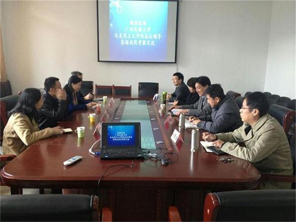 4月10日,广西民族大学色情片 院长陈媛、副院长唐展风一行4人来色情片 考察交流。院长沈大光、党委书记郄捍烈、院长助理张高臣、赵付科、教授委员会主任毛玉美同来访客人进行座谈。