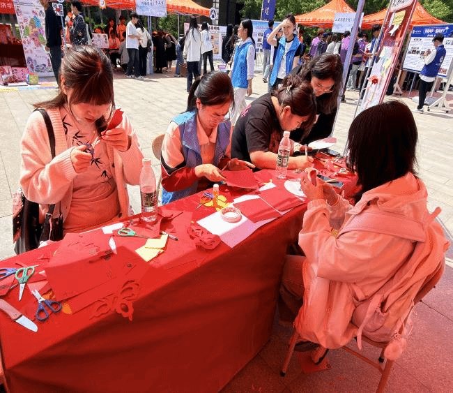 活动过程中,各板块同步开展、运行有序,黑陶观赏、剪纸体验与扒鸡试吃均反响热烈,吸引大批同学驻足参与、聆听讲解、动手体验。整个过程,我院展位人气持续高涨,互动氛围浓厚。