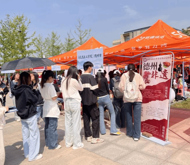 4月23日,山东财经大学首届人文经济学文化节在章丘校区举行。我院精心打造德州非物质文化遗产特色展位,通过多样化展示与互动体验,集中呈现德州非遗文化魅力,取得热烈反响。