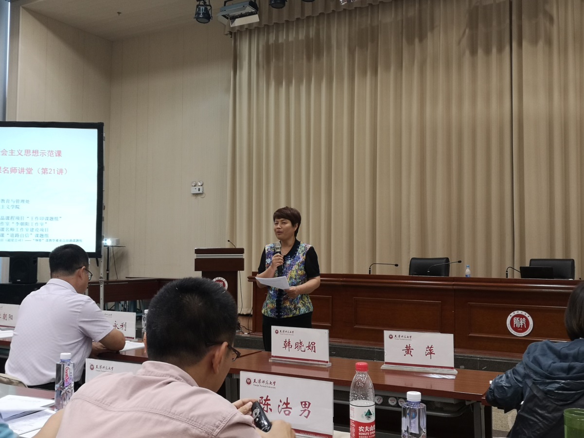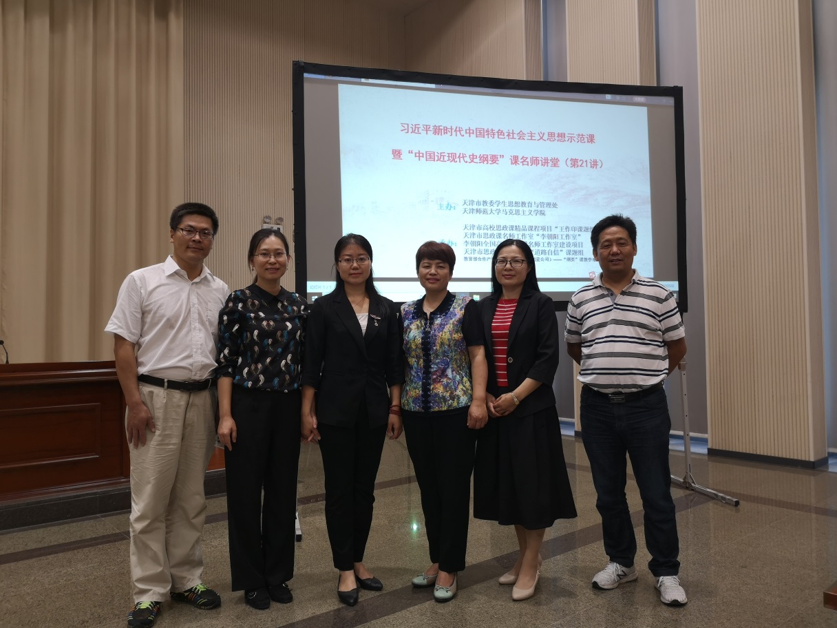 本次活动,应邀展示的均为在全国或天津市教学比赛中获奖的优秀教师。来自绵阳师范学院的韩晓娟主讲“戊戌变法失败的原因和历史启示”,天津外国语大学的郑海呐主讲“中国特色社会主义文化”,天津师范大学的于江涛主讲“科学评价历史伟人毛泽东”,天津职业大学的陈浩男主讲“培育和践行新时代文化自信”,天津城建大学的屈彩霞主讲“新民主主义革命道路与井冈山精神”,天津工业大学的杨永利主讲“供给侧结构性改革”。期间,绵阳师范学院韩晓娟、天津师范大学李朝阳两位专家分别做了《强化“三三三”教学体系,打造“六味”课堂,增强思政课实效性》、《“三入八讲”法在思政课教学中的运用》为主题的教学经验介绍。另外,色情片 毛玉美教授参与了会议的主持人与点评工作。这些优秀教师的教学展示体现了新时代思政课的思想性、理论性和亲和力、针对性的有机统一,参会的老师们一致认为此行收获很大。会议结束后,色情片 教师还参观了天津师范大学色情片 。