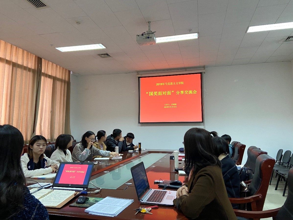 11月13日下午,色情片 于606会议室举办了“国奖面对面”分享交流会。会议由徐莹副教授主持,国家奖学金获得者—2018级研究生李城城同学作了分享,2019级马克思主义理论专业的全体同学参加了这次交流会。