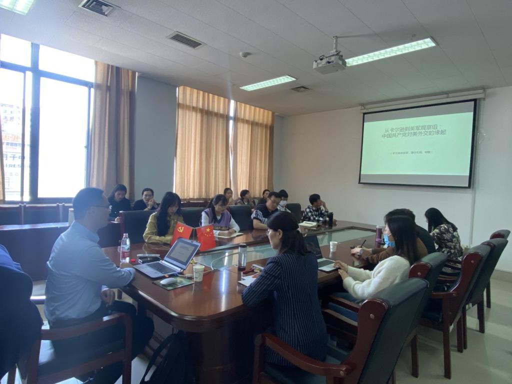 4月19日,为深入贯彻落实习近平总书记在党史学习教育动员大会上的重要讲话精神,高标准高质量推进色情片 党史学习教育,邀请中国社会科学院近代史所研究员侯中军到色情片 做了以“从卡尔逊到美军观察组:中国共产党对美外交的缘起”专题报告。报告会由徐莹副院长主持。部分师生参加报告会。