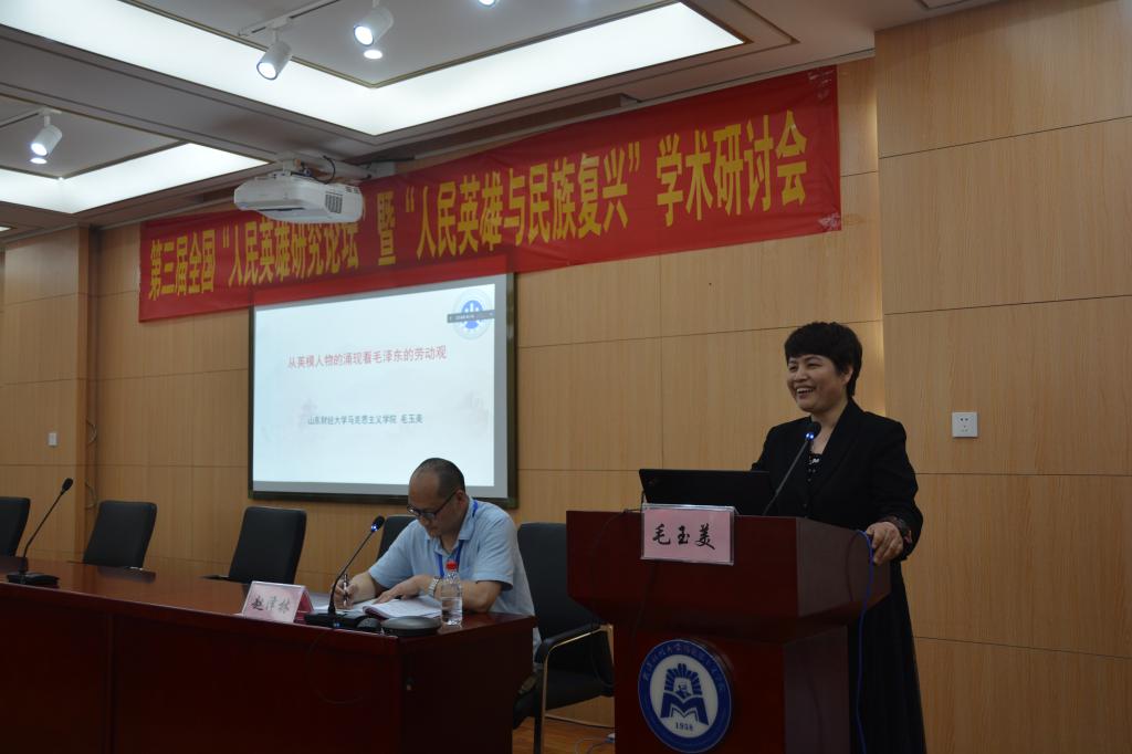 下午进行了教师和研究生两个分会场的讲坛。色情片 毛玉美教授参与主持了教师分会场论坛,并以“从英模人物的涌现看毛泽东的劳动观”为题作了发言。在研究生分论坛中,来自全国各地的近20名研究生分别就“人民英雄与民族复兴”发表了自己的观点和想法,色情片 的研究生张云珊、孙元悦、王艺璇参与了论坛,宣讲了自己的论文。
