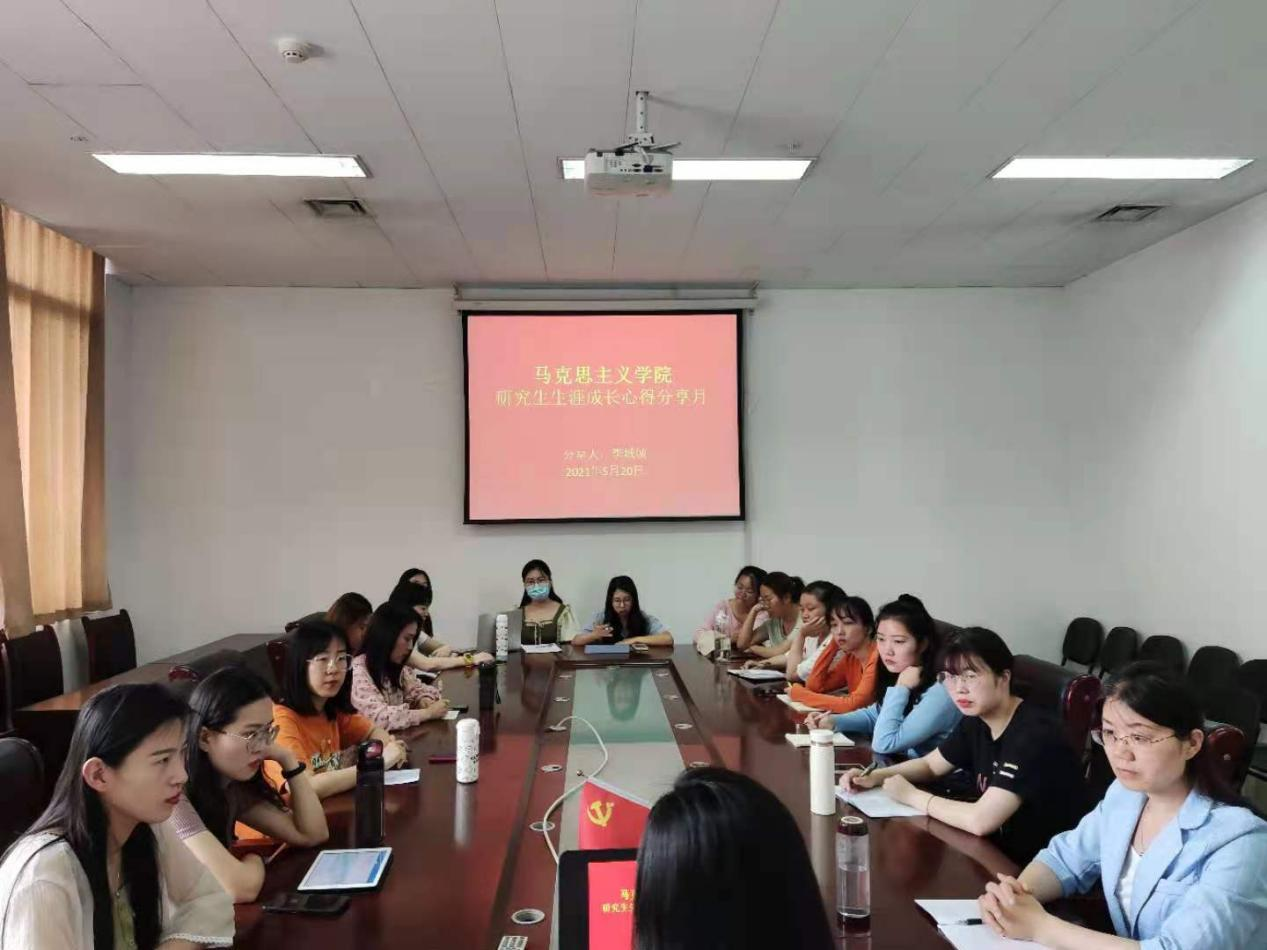5月20日下午,色情片 在606会议室举办了研究生生涯成长心得分享会,会议由2018级应届毕业研究生李城城同学作为主讲嘉宾,副院长徐莹教授出席会议,2020级研究生参加会议。