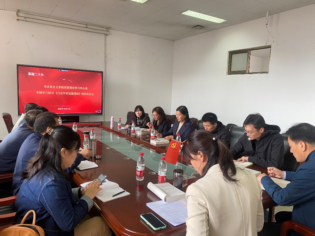 10月14日下午,色情片 党委理论学习中心组于图书馆606会议室召开专题学习研讨《习近平谈治国理政》第四卷会议。学院党委书记石伟、党委副书记王昊天、各党支部书记、各教研室主任、部分教师党员代表参加,石伟书记主持会议。