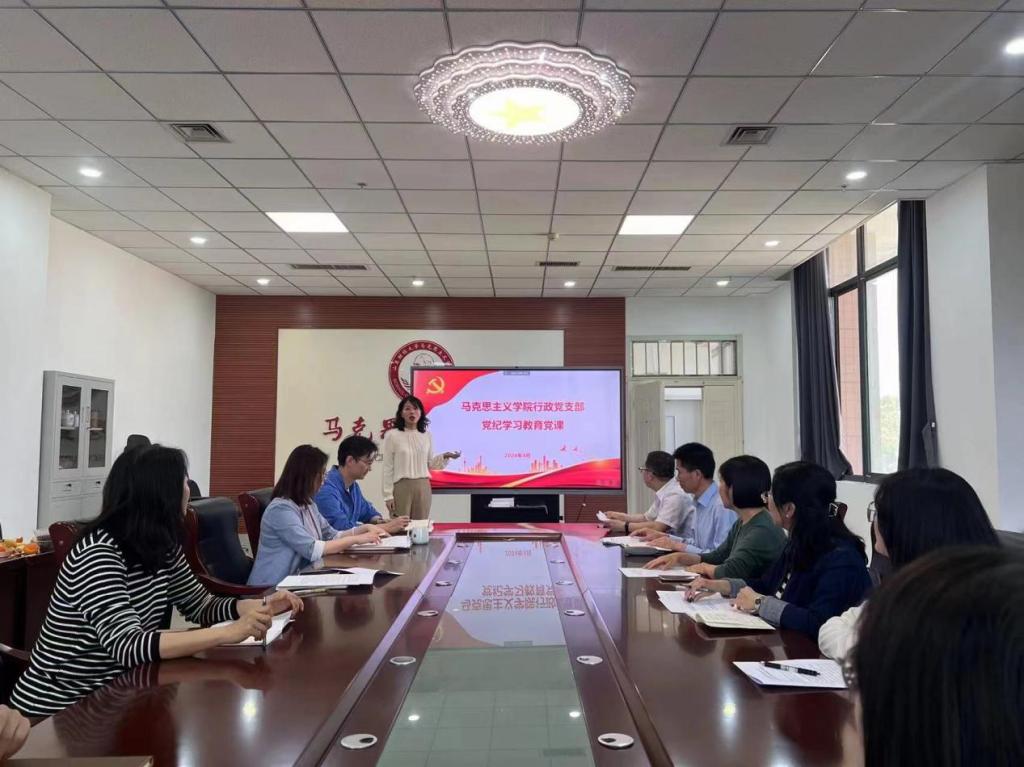 根据学院党纪学习教育会议部署安排,行政党支部于4月18日下午在图书馆606会议室,举办学习党纪教育专题党课。本次党课由党委书记石伟主讲,学院行政党支部全体党员参加学习。