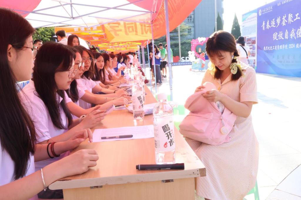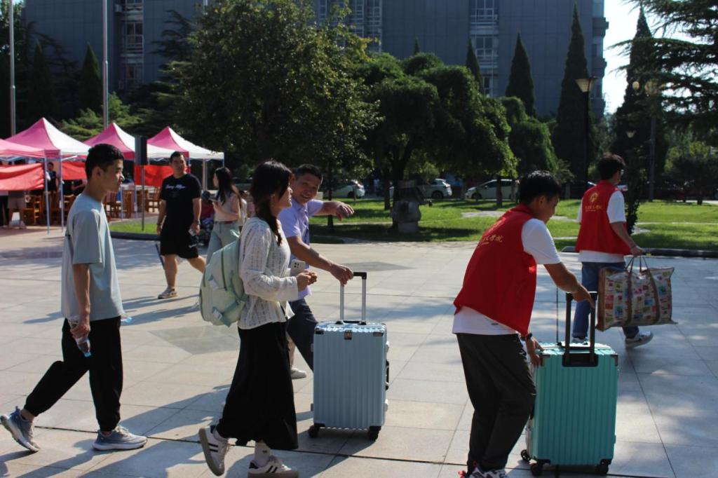 踏着清晨的第一缕阳光,10余名志愿者统一着装,提前到达迎新现场,在院团委书记张建的部署下,有序投入到紧张的场地布置工作中,以饱满的精神状态迎接新生的到来。迎新开始后,志愿者们各司其职,高效有序地协助新生完成身份确认、材料收取、物品发放、住宿办理等入学报道手续。同时,热情引导学生家长在休息区等待,为新生及陪同亲人在合影板前拍照打卡留念,做好服务工作等,让新生们在踏入校园的第一步就感受到了家的温暖和关怀。