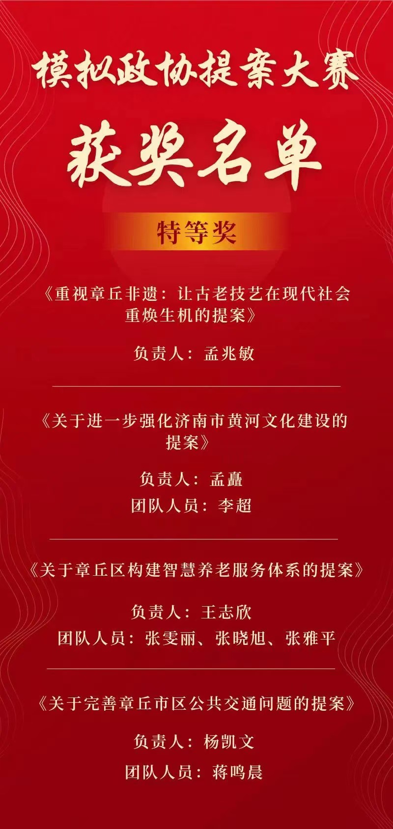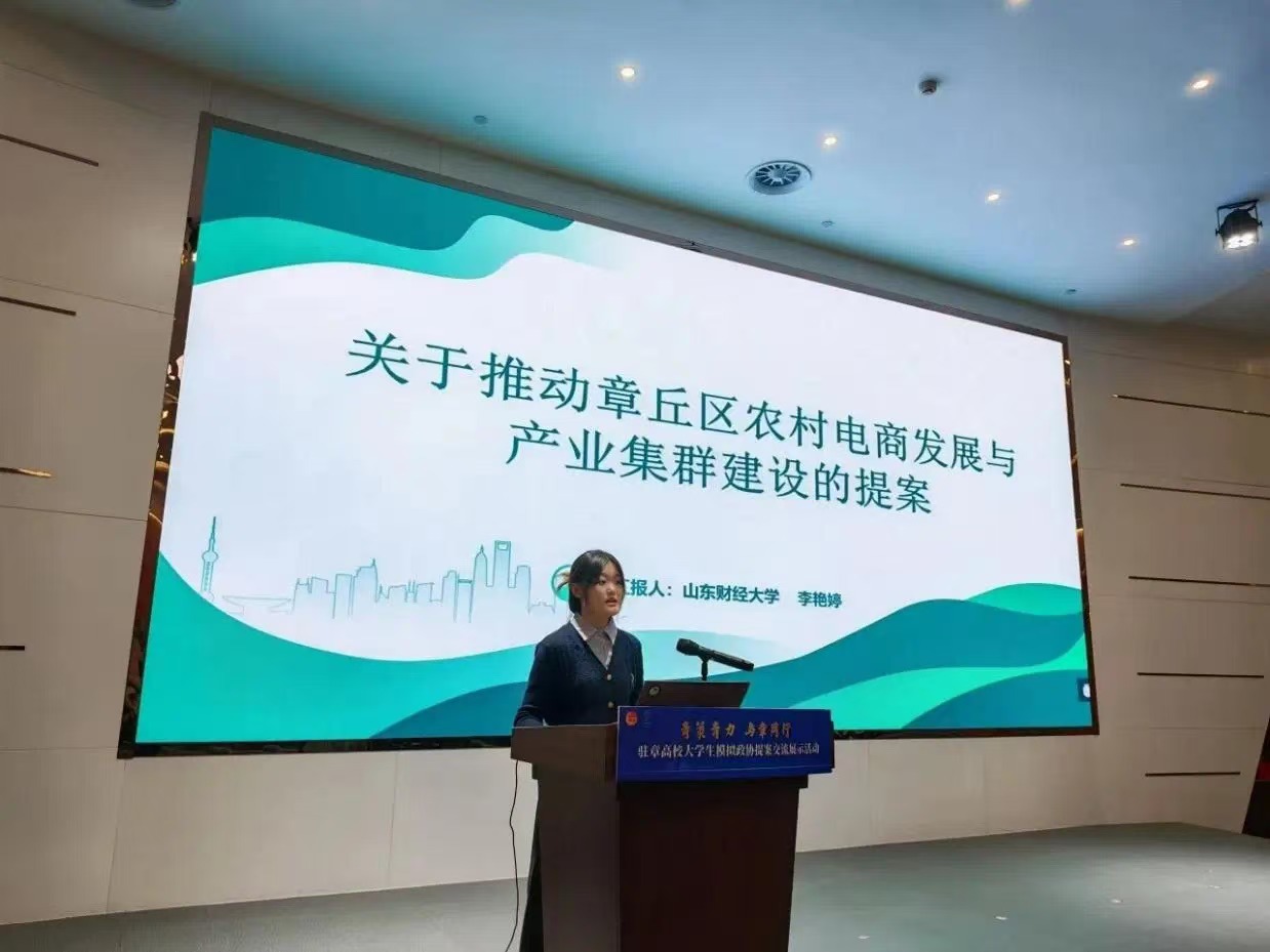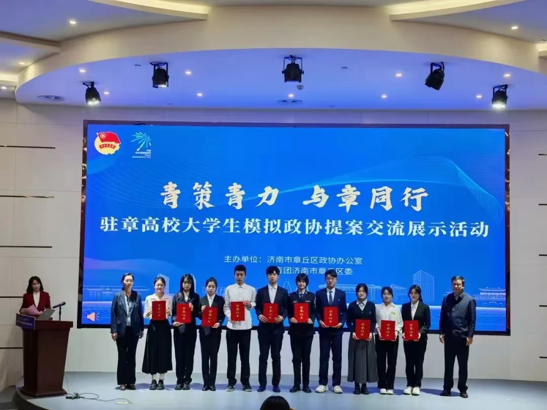 值得一提的是,获奖提案中四份关于章丘区经济社会发展综合提升的提案凭借精彩的现场答辩展示,获评“优秀模拟提案”,《关于推动章丘区农村电商发展与产业集群建设的提案》获评“十佳提案”,充分展现出学子对地方发展的积极关注与智慧贡献。此次大赛引起了热烈反响,同学们以极高的热情投入到提案的筹备工作中。