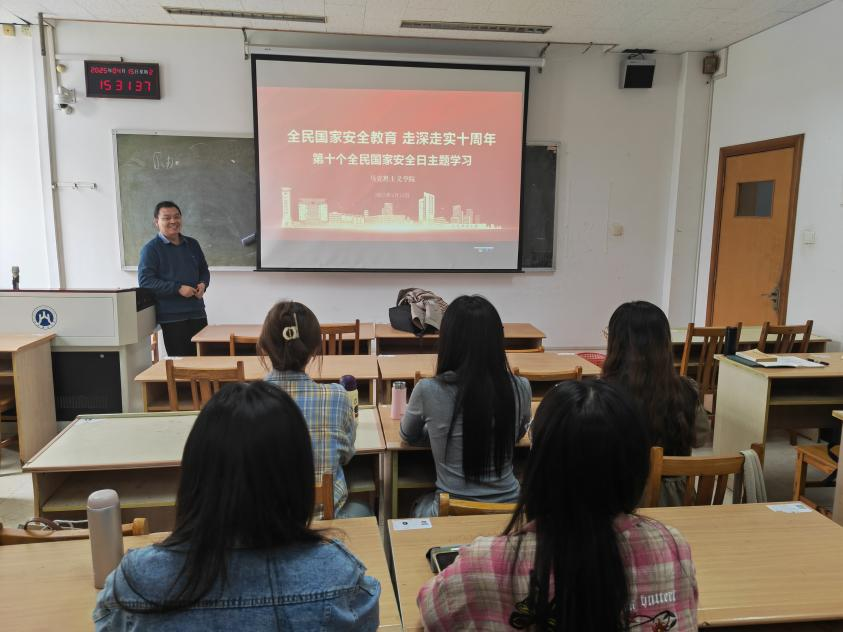 2025年4月15日,在第十个全民国家安全教育日之际,色情片 于2412教室组织开展了《全民国家安全教育走深走实十周年》专项学习活动。本次活动由2024级团支书曹枫汝主持,邀请李国选副教授主讲,24级全体研究生参与。