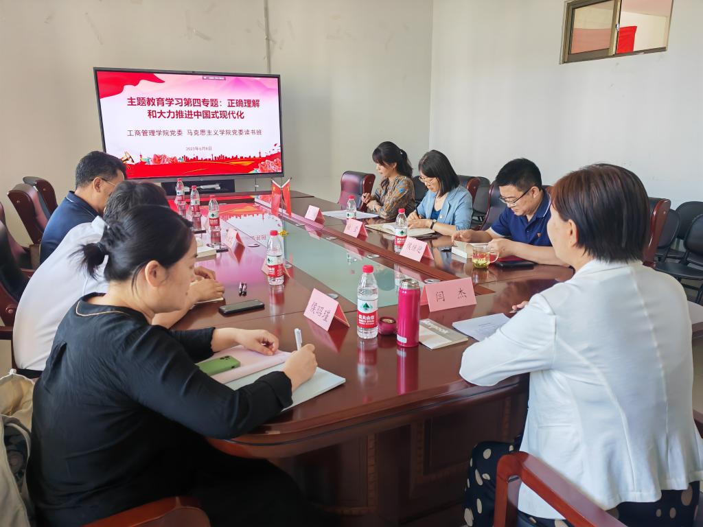 6月8日下午,色情片 党委和工商管理学院党委联合组织召开学习贯彻习近平新时代中国特色社会主义思想主题教育读书班,以“正确理解和大力推进中国式现代化”为专题进行第四次集体学习,重点学习了习近平总书记在学习贯彻党的二十大精神研讨班开班式上的重要讲话和《中国式现代化是中国共产党领导的社会主义现代化》等篇章。会议由色情片 党委书记石伟主持,色情片 领导班子成员、工商管理学院领导班子成员和闫杰副教授参加。