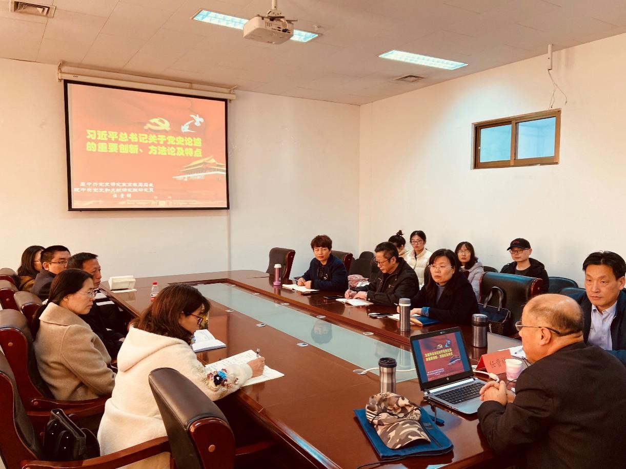 任教授分别就习近平关于中共历史的论述的重要创新、方法论及特点进行了深刻解读。首先任教授从习近平关于“四个全面”战略布局、中国特色社会主义与科学社会主义关系、改革开放前后两个历史时期的关系、马克思主义中国化两大理论成果关系、“毛泽东是马克思主义中国化的伟大开拓者”、邓小平开创中国特色社会主义道路的历史功绩、中国人民抗日战争、中国人民代表大会制度、改革开放理论、“四个自信”、红军长征精神、和平共处五项原则、我国社会主要矛盾、“两个飞跃”到“三个飞跃”这十四个方面的创新性论述进行了解读。接着,任教授又对习近平关于中共历史的方法论进行了探究,指出了运用的方法论是客观公正、抓住主流和本质、科学把握历史规律、以长远的目光广阔的时空观察问题、全面辩证的。最后,任教授从语言表达、对党、人民的情感、论述方法等五个方面阐述了习近平总书记论述中国共产党历史的特点。