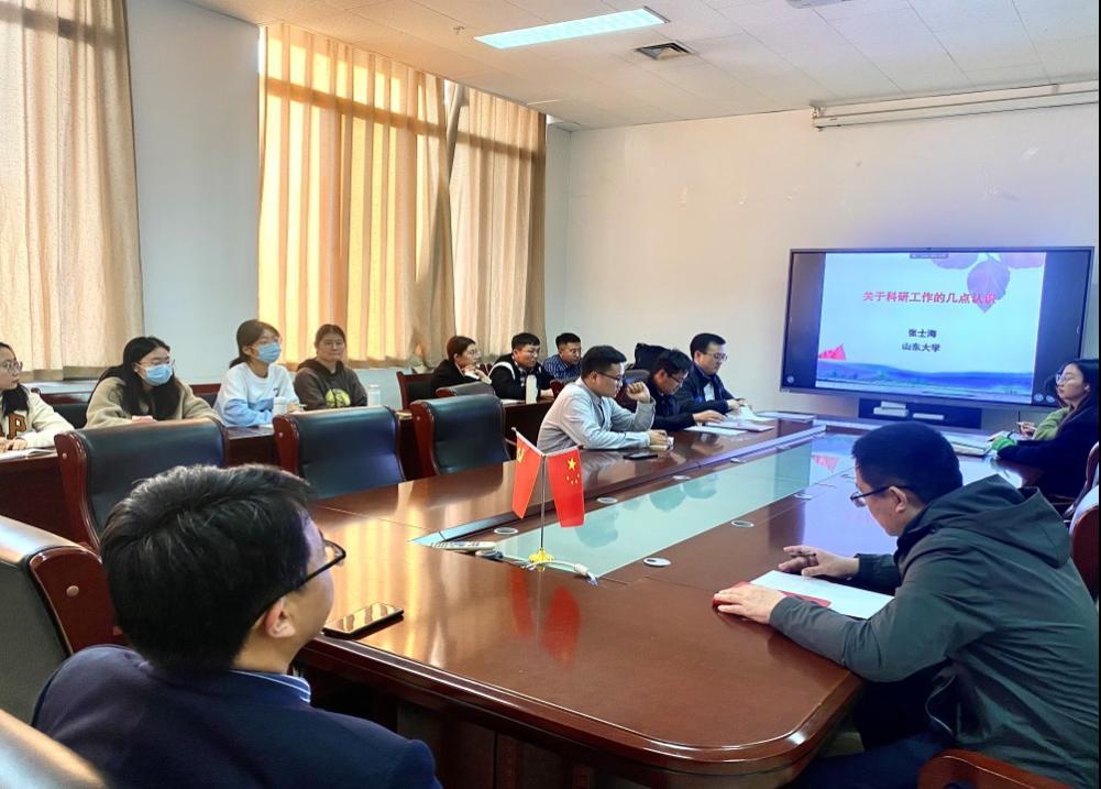 11月15日下午,山东大学色情片 院长张士海教授应色情片 邀请,在学院606会议室作题为《关于科研工作的几点认识》的座谈会。学院院长徐莹、副院长侯继迎、王敏出席会议,本场座谈会由副院长侯继迎主持,部分研究生参加。
