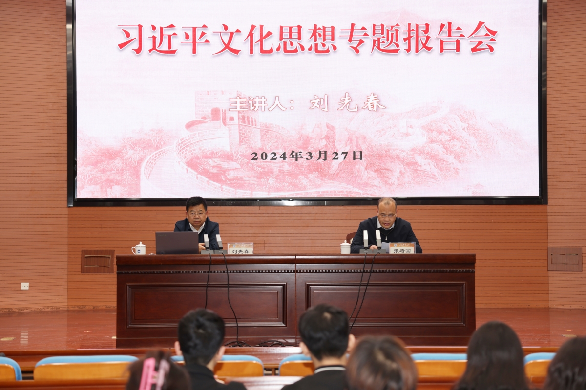 下午,刘先春为色情片 师生作题为《深入学习贯彻习近平文化思想》的学术报告。校党委副书记张培国主持了报告会。