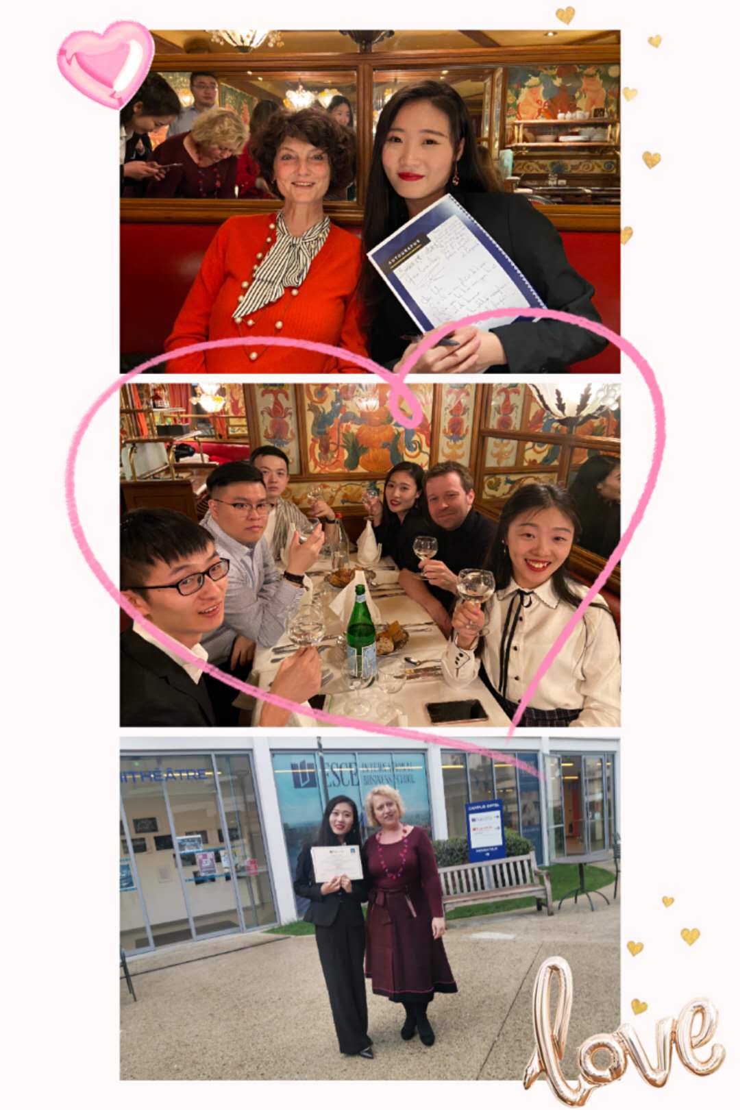 离开法国前的晚上,ESCE邀请本次项目全体授课教师和30名访学研究生在著名的“猪脚”餐厅共进晚餐,在浪漫的巴黎,吃着浪漫的法餐,讨论着三个月所经历的点点滴滴,感叹着时间消逝的速度,我们在欢声笑语中互相拥抱,请老师在纪念册下写下寄语与签名,一切都在告诉我们,要结束了。在一声声“Au revoir!”中,目送老师们陆续离开,天下没有不散的筵席,这一切会一直留在心底。