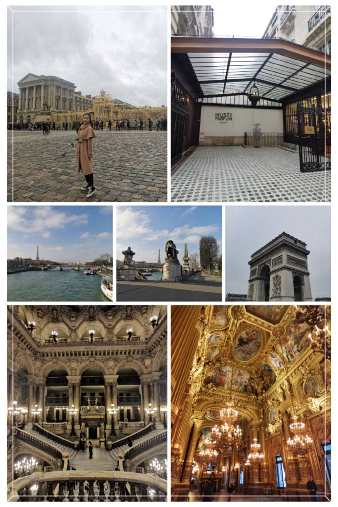 世界上最大的卢浮宫博物馆是那样的壮观,透明的外观体现这这座城的时尚,进入博物馆又感受到了这座城的内涵,蒙娜丽莎、胜利女神、断臂维纳斯,当课本上经典的艺术作品一件件呈现在面前,才能真正体会到艺术的魅力。象征着爱情的埃菲尔铁塔是那样的感人,在“最接近天堂”的铁塔顶端,我们感受到了艾菲尔对亡妻忠贞不渝的爱,体会到了这座钢铁建筑背后的柔情。位于香榭丽舍大街的凯旋门是那样雄伟,四角的浮雕分别代表了出征、胜利、和平和抵抗,更体现出了拿破仑对胜利的尊重与渴望。香榭丽舍大街是那样的繁华,歌词中的场景变成了现实,当你捡起那片香榭的落叶,浪漫便由心而生,这也许是很多女生的梦。蒙马特高地的风景是那样的迷人,《天使爱美丽》的咖啡馆出现在眼前,电影场景一下子变成了现实,我们仿佛剧中的女主角,俯瞰着全巴黎的美景,仰望着圣心堂与蓝天白云共汇的美景。十三区的街头艺术是那样的独特,每走一步都可以发现一处别致的涂鸦,在这些五彩缤纷的街道背后一定有许多有趣的灵魂,他们都有一支神奇的画笔,为这座城赋予了特殊的气息。如今的巴黎圣母院是那样令人惋惜,没有亲眼见过大火前的全貌,希望不久后能看到它涅槃重生。远郊的凡尔赛宫殿依旧散发着耀眼的光芒,太阳照射下的属于太阳神的宫殿美轮美奂,哪怕只是一间卧室,都奢华至极,还有美丽的花园,中和了建筑的刚,为整体增加了一份灵动的美。