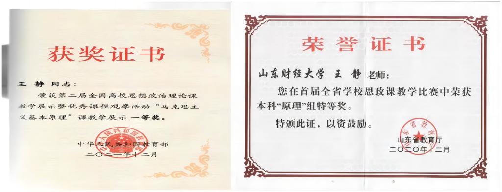 课程团队的授课水平和宣讲能力也获得了省级领导高度肯定和社会的普遍认可。青年教师受邀录制《宣讲时间》和《青年说》节目,《齐鲁晚报》曾对我们的教学进行两次专题报道。课程负责人荣获2020年第四届省文化创新奖1项,入�2023年山东省首批师德宣讲囀�